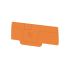 Abschlussplatte für den Berührungsschutz an spannungsführenden Teilen von Reihenklemmen. Die Abschlussplatte wird auch zur optisch erkennbaren Trennung von Stromkreisen eingesetzt, um Verdrahtungsfehler zu vermeiden.