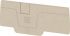 Abschlussplatte für den Berührungsschutz an spannungsführenden Teilen von Reihenklemmen. Die Abschlussplatte wird auch zur optisch erkennbaren Trennung von Stromkreisen eingesetzt, um Verdrahtungsfehler zu vermeiden.