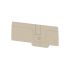 Abschlussplatte für den Berührungsschutz an spannungsführenden Teilen von Reihenklemmen. Die Abschlussplatte wird auch zur optisch erkennbaren Trennung von Stromkreisen eingesetzt, um Verdrahtungsfehler zu vermeiden.