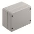 Gehäuse aus Metall für den Einsatz in industriellen Anwendungen. Die Montagebohrungen befinden sich außerhalb des Dichtigkeitsbereichs. Eine Wandmontage kann durch Befestigungslöcher oder mit Montagefüßen realisiert werden.