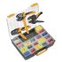 Sortimentskasten mit Crimpwerkzeug, Abisolierwerkzeug und Aderendhülsen zum Schneiden, Abisolieren und Crimpen. Aus dem gut geordneten Sortiment, resultieren minimierte Such- und Vorbereitungszeiten.