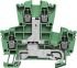 Reihenklemme mit Kontakt zur Montageschiene für den Anschluss von Schutzleitern auf mehreren Etagen.