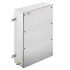 Gehäuse aus Metall für den Einsatz in explosionsgefährdeten Bereichen. Die Montagebohrungen befinden sich außerhalb des Dichtigkeitsbereichs. Eine Wandmontage kann durch Befestigungslöcher oder mit Montagefüßen realisiert werden.