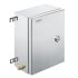 Gehäuse aus Metall für den Einsatz in industriellen Anwendungen. Die Montagebohrungen befinden sich außerhalb des Dichtigkeitsbereichs. Eine Wandmontage kann durch Befestigungslöcher oder mit Montagefüßen realisiert werden.