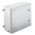 Gehäuse aus Metall für den Einsatz in industriellen Anwendungen. Die Montagebohrungen befinden sich außerhalb des Dichtigkeitsbereichs. Eine Wandmontage kann durch Befestigungslöcher oder mit Montagefüßen realisiert werden.