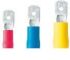 Isolierte Flachsteckhülse aus Kupfer mit konischem Einführtrichter.
