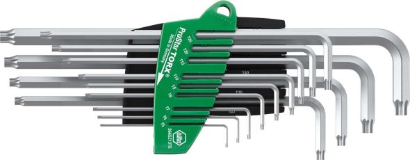 Erleichtert die Handhabung: Schiebefunktion für einhändiges Öffnen des Halters und einfache, schnelle Entnahme. Senkt Ihre Kosten: Lange Lebensdauer dank idealem Korrosionsschutz bei perfekter Passgenauigkeit in der Schraube. Anwendung: Für alle TX®-Schraubaufgaben. Extra: Platzsparender ProStar erlaubt einfachste Entnahme jedes Einzelschlüssels ohne Bewegung anderer. Extra: Alle Schlüssel von T5 bis T45 in einem Satz. Klinge: Chrom-Vanadium Stahl, durchgehend gehärtet, Titansilber. Einfaches Entnehmen Hochwertiges Titansilber Inhalt: 1x Stiftschlüssel TX® titansilber T5 x 72 mm (39106) 1x Stiftschlüssel TX® titansilber T6 x 80 mm (39107) 1x Stiftschlüssel TX® titansilber T7 x 88 mm (39108) 1x Stiftschlüssel TX® titansilber T8 x 101 mm (39109) 1x Stiftschlüssel TX® titansilber T9 x 111 mm (39110) 1x Stiftschlüssel TX® titansilber T10 x 121 mm (39111) 1x Stiftschlüssel TX® titansilber T15 x 136 mm (39112) 1x Stiftschlüssel TX® titansilber T20 x 148 mm (39113) 1x Stiftschlüssel TX® titansilber T25 x 163 mm (39114) 1x Stiftschlüssel TX® titansilber T27 x 176 mm (39115) 1x Stiftschlüssel TX® titansilber T30 x 191 mm (39116) 1x Stiftschlüssel TX® titansilber T40 x 210 mm (39117) 1x Stiftschlüssel TX® titansilber T45 x 232 mm (39118) 1x ProStar Halter