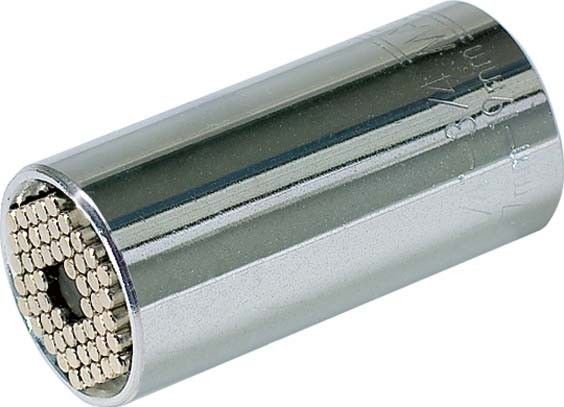 Steigert Ihre Effizienz: Der multifunktionelle Gripper passt sich an jede Mutter oder Schraube mit Außenprofil an. Spart Platz: Der Gripper ist die platz- und gewichtssparende Alternative zum Steckschlüsselsatz im mobilen Einsatz. Antrieb: DIN 3120, Form C 10. Anwendung: Die Alternative zum Steckschlüsselsatz im mobilen Einsatz. Ideal für das Verschrauben von exotischen Schrauben wie Haken- oder Ösenschrauben. Extra: Ermöglicht eine Drehmoment-Übertragung von bis zu 80 Nm. Extra: Der Gripper passt auch auf exotische Schrauben wie Haken- oder Ösenschrauben. Werkstoff: Gehäuse aus legiertem Stahl. 54 gehärtet Stahlstifte. Für alle Schrauben mit Außenprofil bis 19 mm Ersetzt Steckschlüsselsatz 7-19 mm Bis max. 80 Nm Beim Eindrehen oder Lösen von exotischen Schraubenformen wie Ösen kommt man mit einem Standard Steckschlüsselsatz nicht weit. Den optimalen Problemlöser präsentiert Wiha mit dem multifunktionalen Steckschlüsseleinsatz Gripper. Dank seiner 54 federbelasteten Stahlstifte passt sich der Gripper an jede Schraube bis 8 mm Höhe oder Mutter mit Außenprofil an. Auch exotische Profile wie Haken- oder Ösenschrauben sind für den Gripper kein Problem. Er ersetzt Nüsse im Bereich von 7 bis 19 mm, egal ob es sich um Zoll- oder metrische Abmessungen handelt. Zudem ist eine Drehmoment-Übertragung von bis zu 80 Nm möglich. Der Steckschlüsseleinsatz passt auf Vierkant-Werkzeugaufnahmen mit 3/8Zoll. Dank seiner kompakten Größe bietet der universell einsetzbare Gripper die platz- und gewichtssparende Alternative zum Steckschlüsselsatz im mobilen Einsatz.