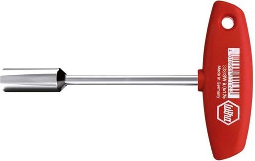 Anwendung: Um hohe Drehmomente ermüdungsarm zu übertragen. Extra: Innenbohrung für überstehende Gewindeschäfte. Griff: Wiha Quergriff Classic. Klinge: Chrom-Vanadium Stahl, durchgehend gehärtet, glanzvernickelt.