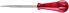 Anwendung: Zum Vorstechen von Löchern und Bohrungen. Griff: Aus Celluloseacetat, rot-transparent. Klinge: Chrom-Vanadium Stahl, durchgehend gehärtet, glanzvernickelt.